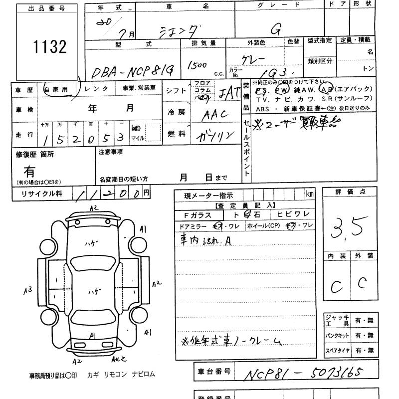 TOYOTA SIENTA G - лот 1132
