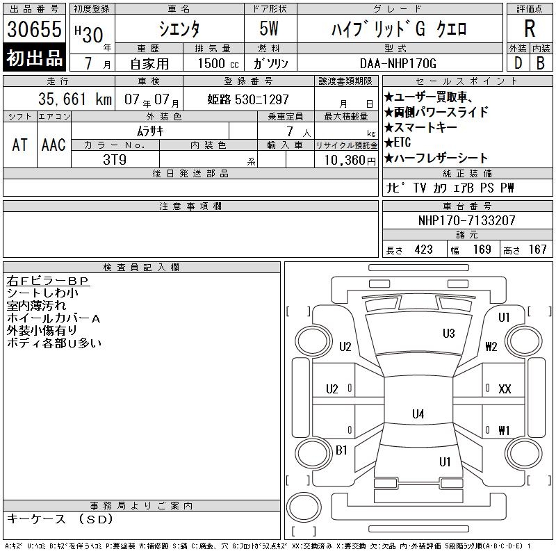 TOYOTA SIENTA HYBRID GKERO - лот 30655
