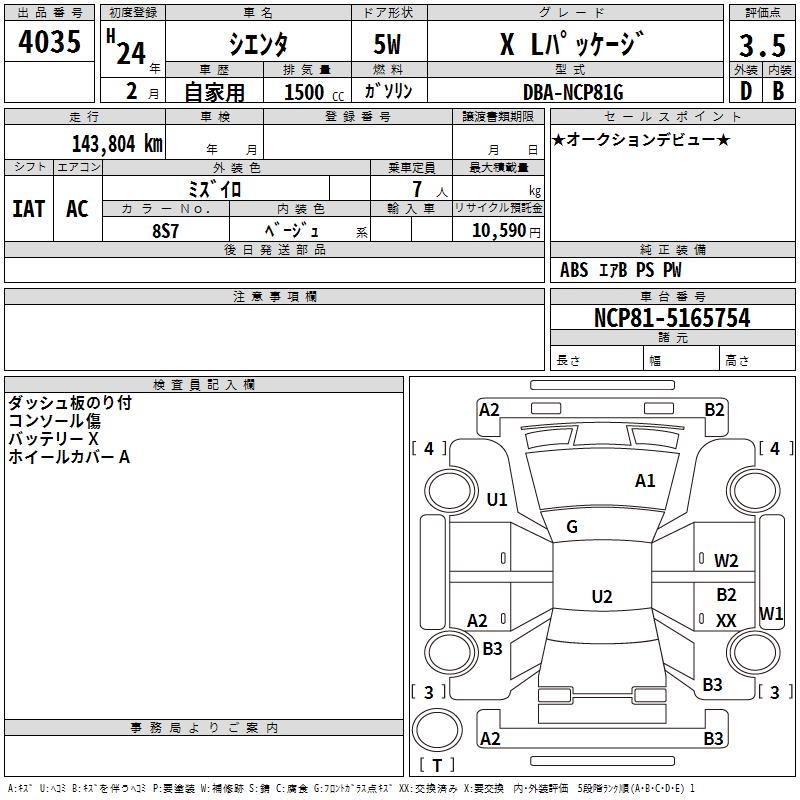 TOYOTA SIENTA X L PACKAGE - лот 4035