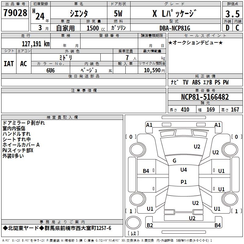 TOYOTA SIENTA X L PACKAGE - лот 79028