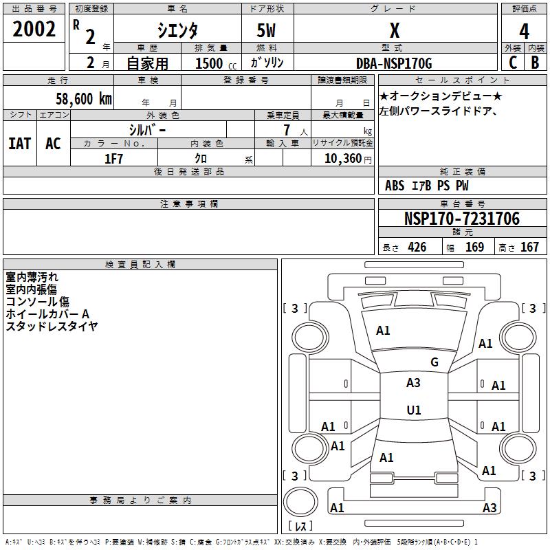 TOYOTA SIENTA X - лот 2002