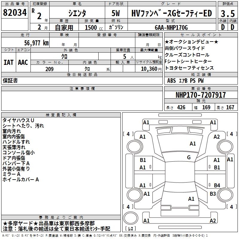TOYOTA SIENTA HV FAN BASE G SAFETY -ED - лот 82034