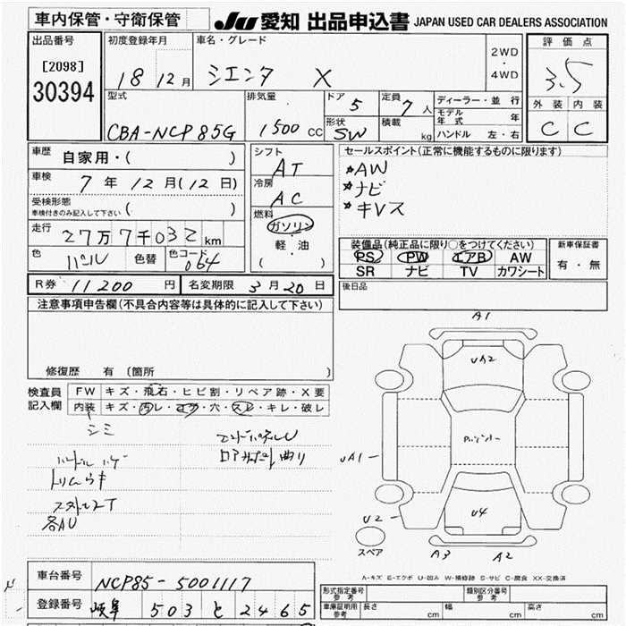 TOYOTA SIENTA X - лот 30394