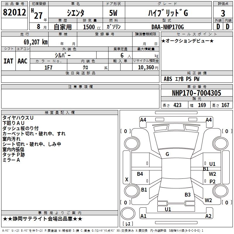 TOYOTA SIENTA HYBRID G - лот 82012