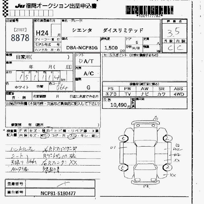 TOYOTA SIENTA DICE LTD - лот 8878
