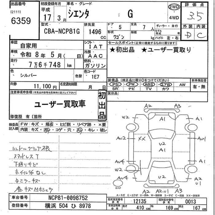 TOYOTA SIENTA G - лот 6359