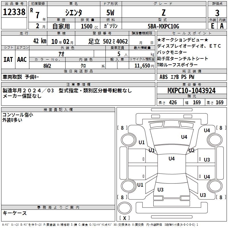 TOYOTA SIENTA Z - лот 12338