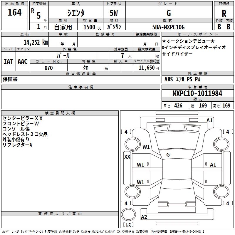 TOYOTA SIENTA G - лот 164