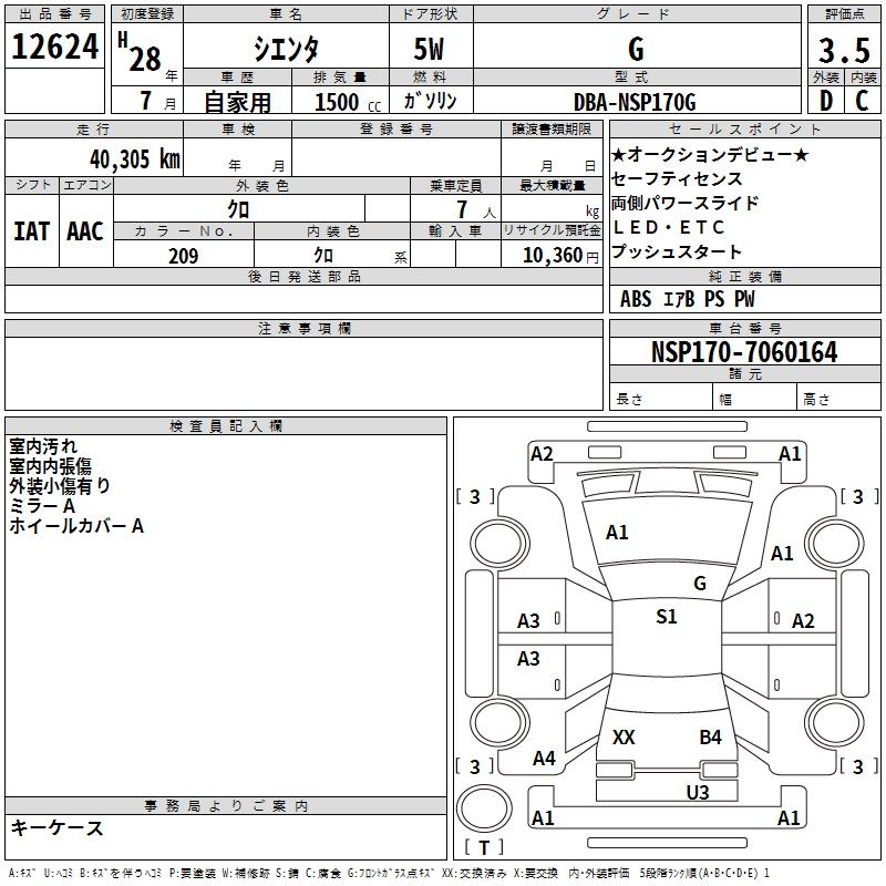 TOYOTA SIENTA G - лот 12624