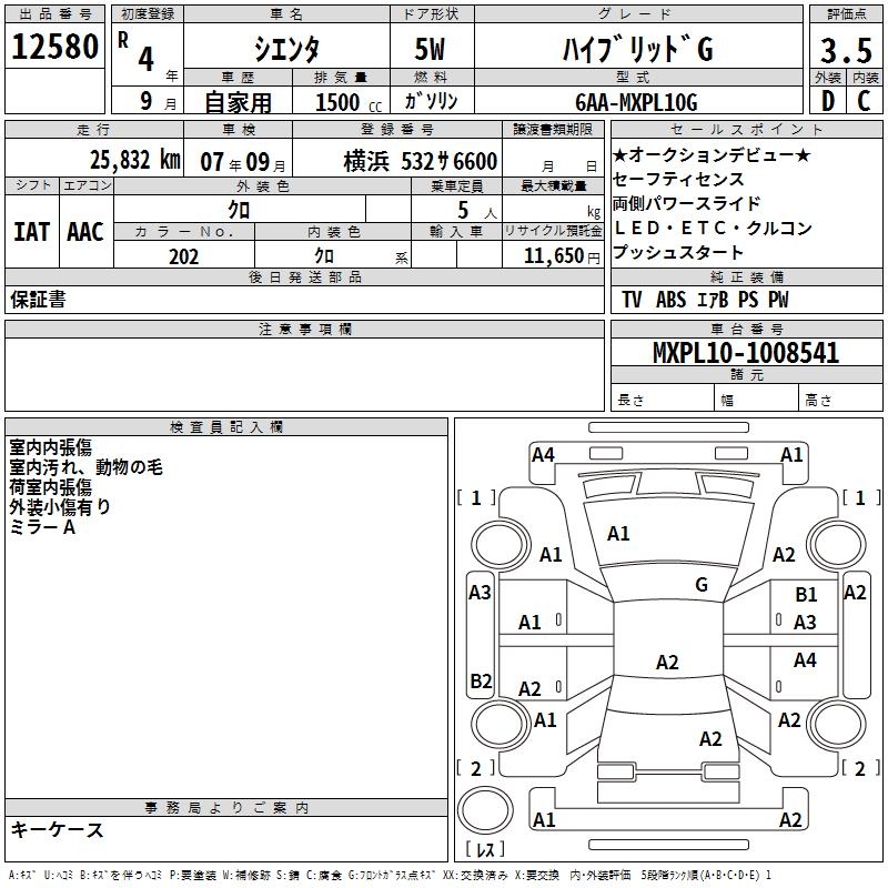 TOYOTA SIENTA HYBRID G - лот 12580