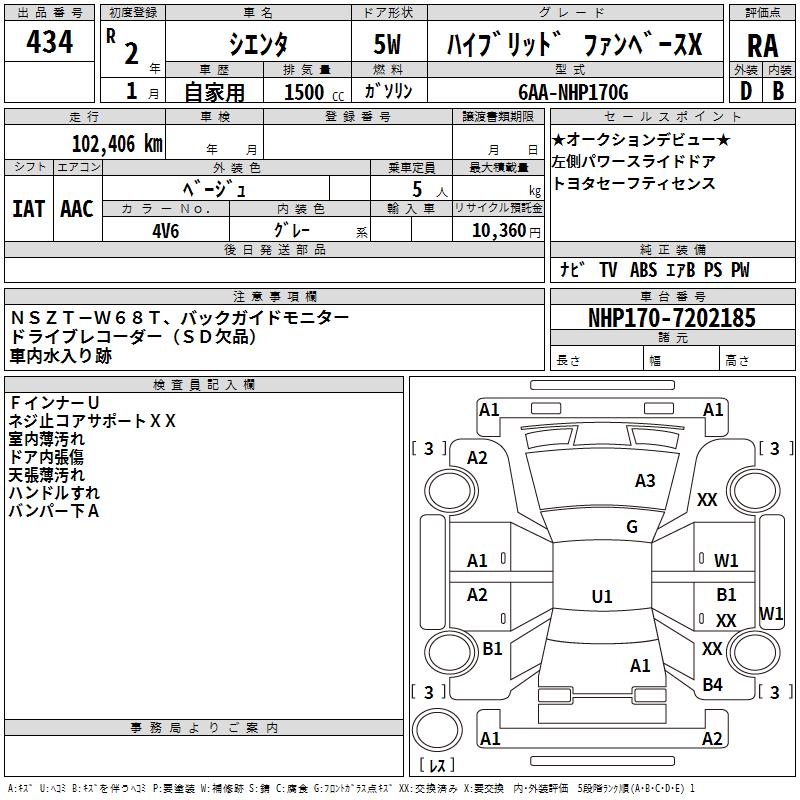 TOYOTA SIENTA HYBRID FAN BASE X - лот 434