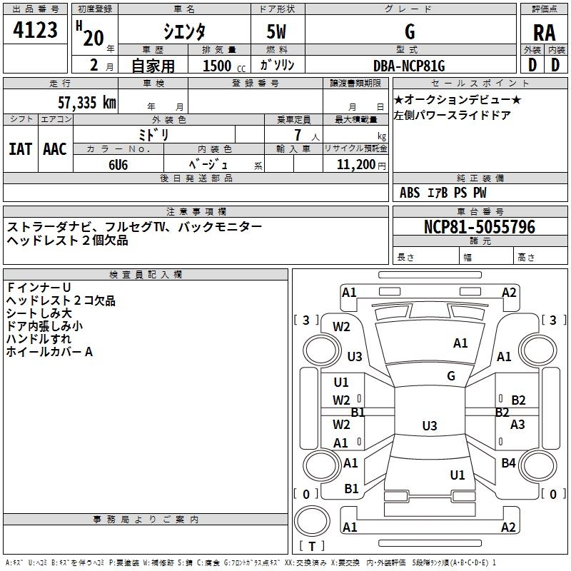 TOYOTA SIENTA G - лот 4123