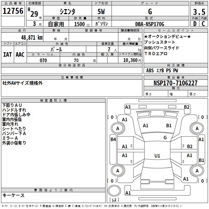 TOYOTA SIENTA G - лот 12756