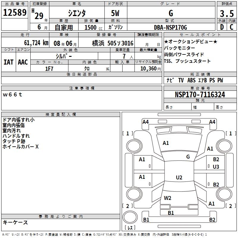 TOYOTA SIENTA G - лот 12589