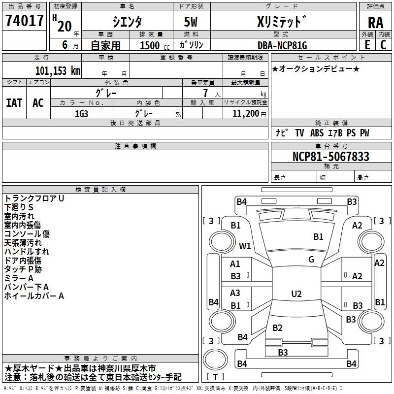 TOYOTA SIENTA X LIMITED - лот 74017
