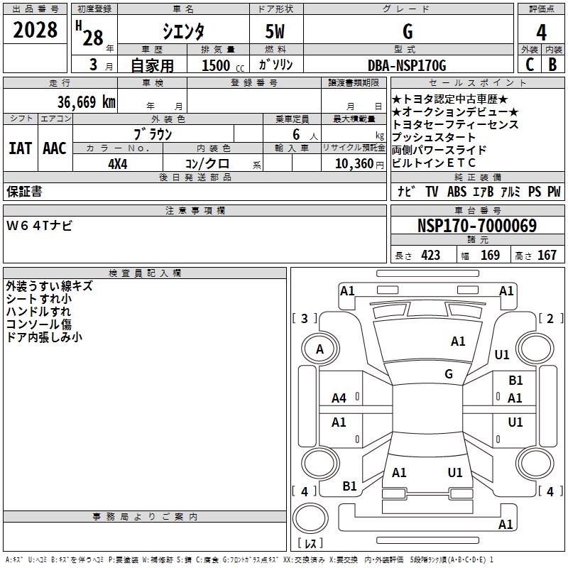 TOYOTA SIENTA G - лот 2028