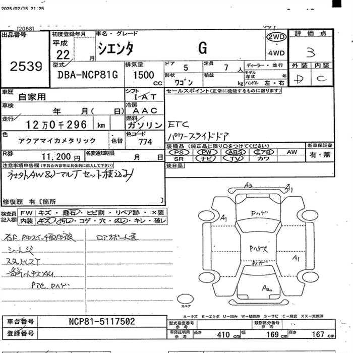 TOYOTA SIENTA G - лот 2539