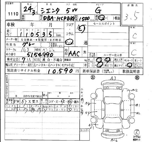 TOYOTA SIENTA G - лот 1110