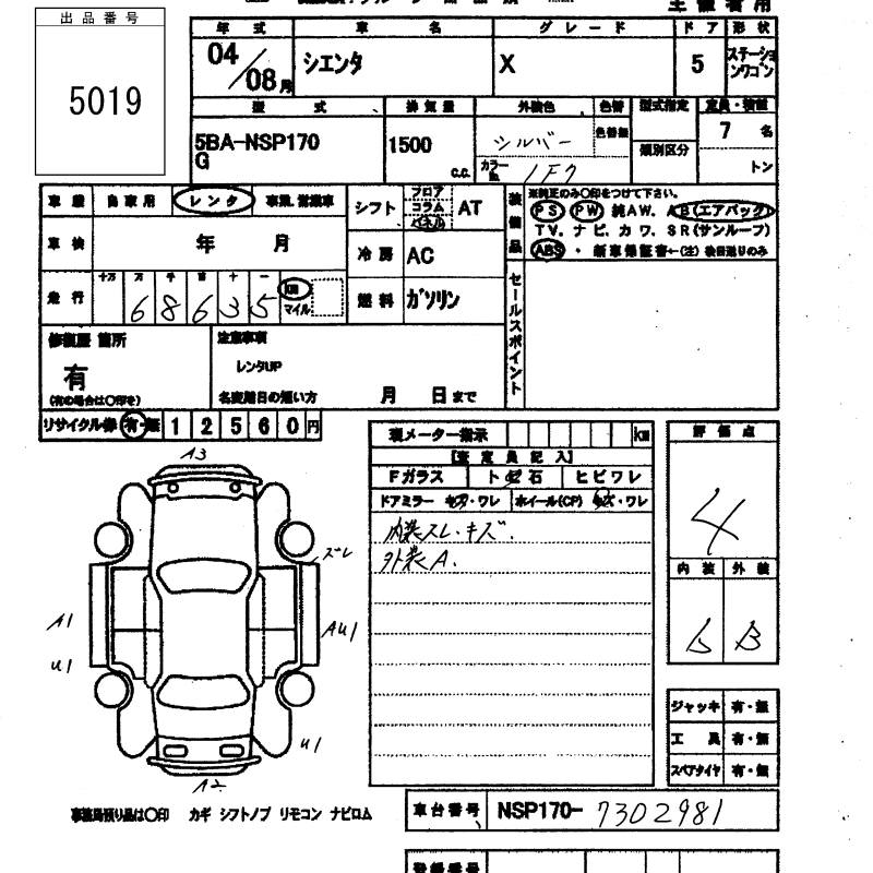 TOYOTA SIENTA X - лот 5019