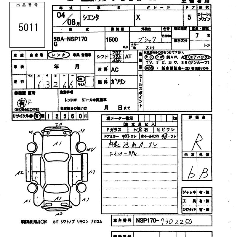 TOYOTA SIENTA X - лот 5011