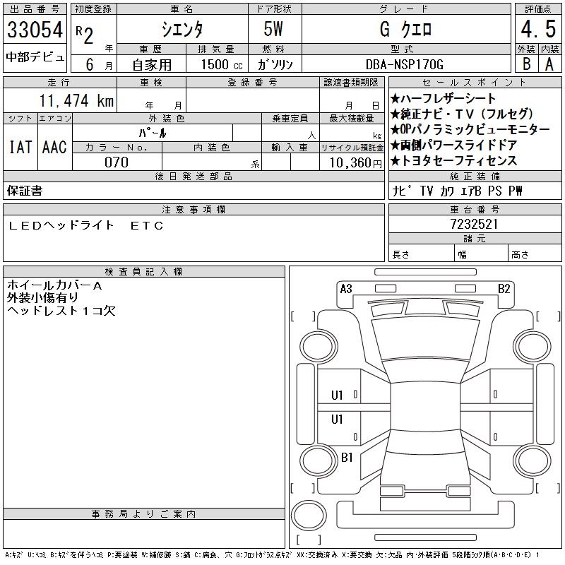 TOYOTA SIENTA GKERO - лот 33054