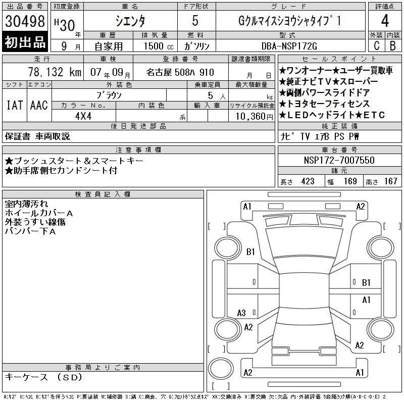 TOYOTA SIENTA GKRU MY S USE CAR TYPE 1 - лот 30498