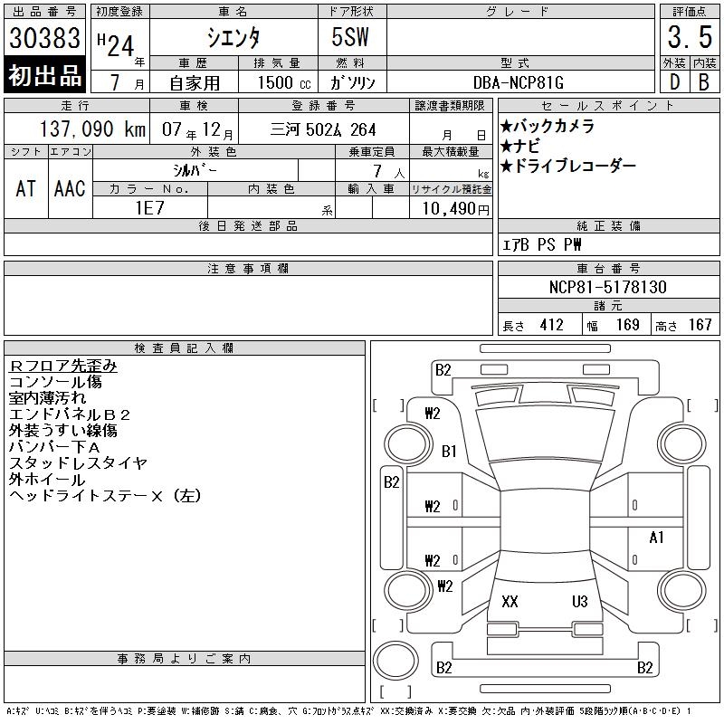 TOYOTA SIENTA - лот 30383