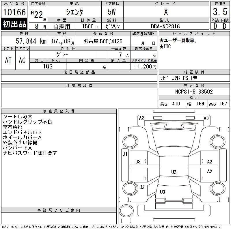 TOYOTA SIENTA X - лот 10166