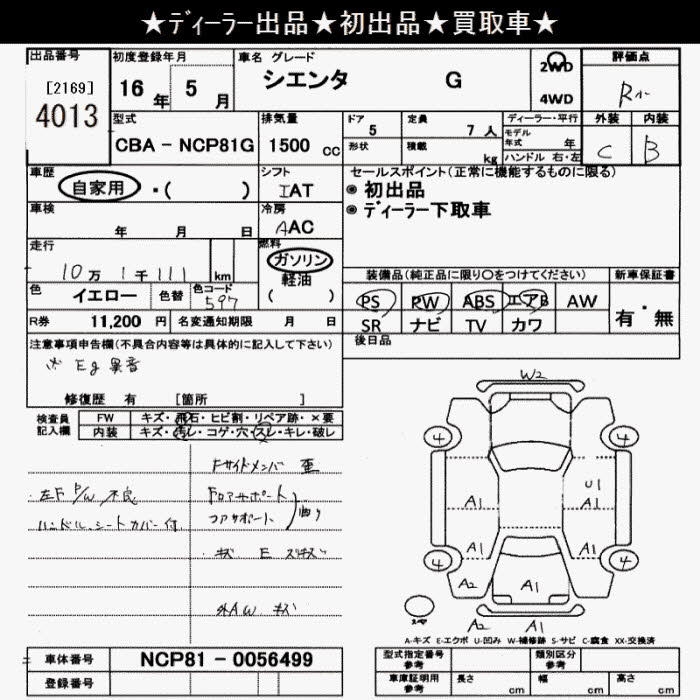TOYOTA SIENTA G - лот 4013