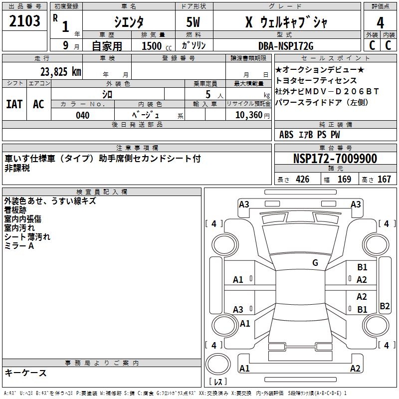 TOYOTA SIENTA X WELL CAB CAR - лот 2103