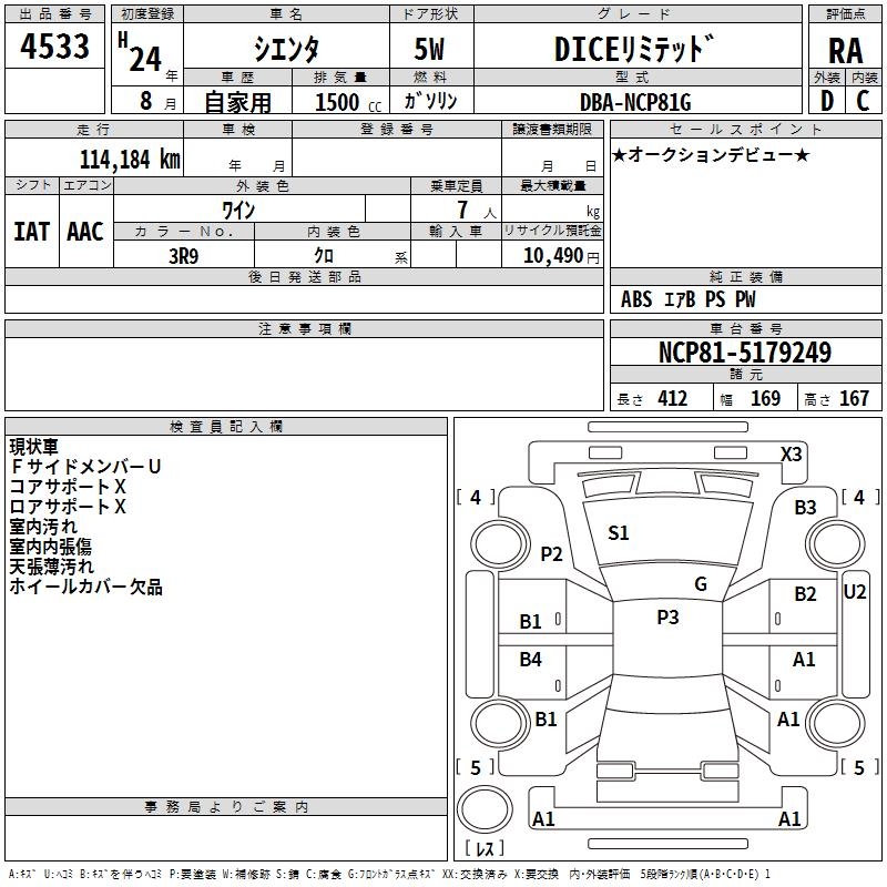 TOYOTA SIENTA DICE LIMITED - лот 4533