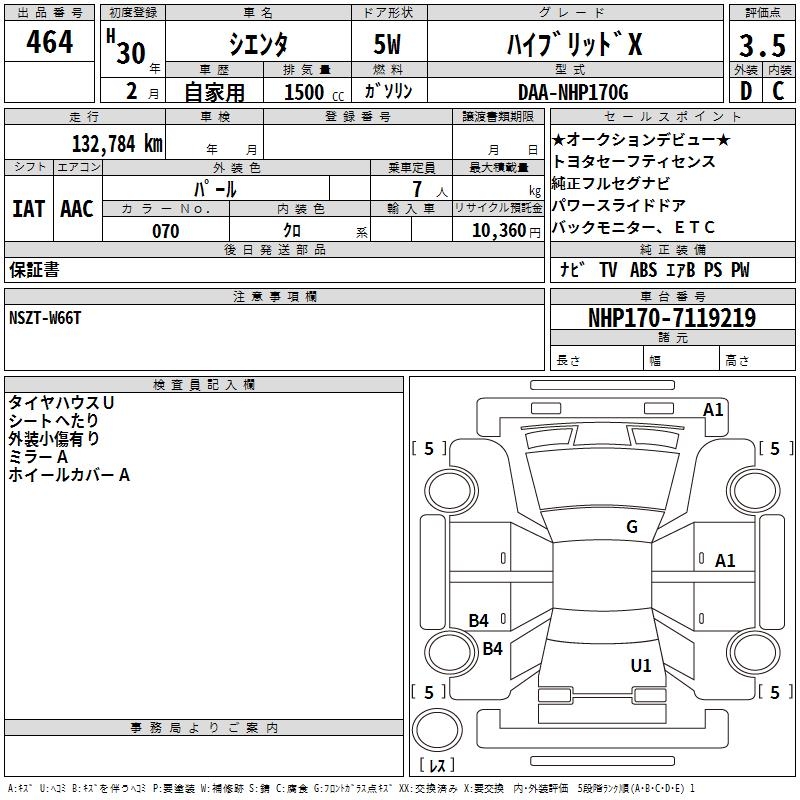 TOYOTA SIENTA HYBRID X - лот 464