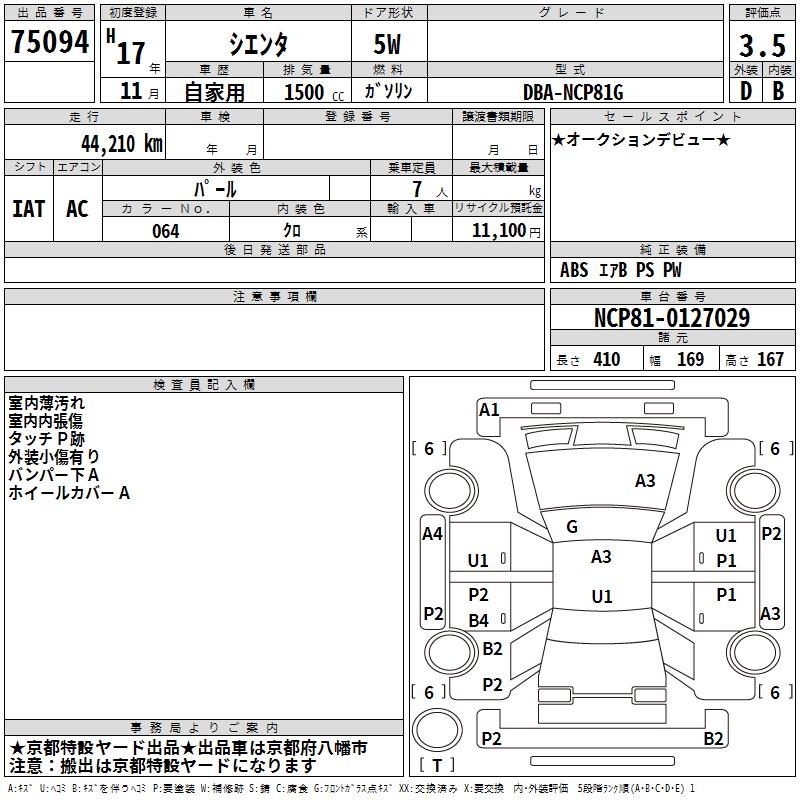 TOYOTA SIENTA - лот 75094