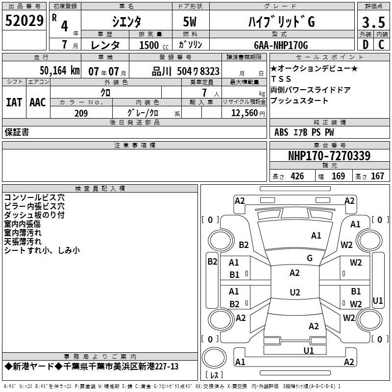 TOYOTA SIENTA HYBRID G - лот 52029