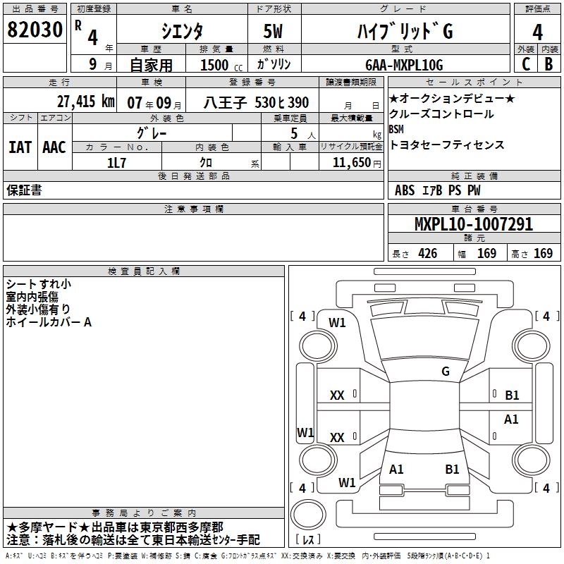 TOYOTA SIENTA HYBRID G - лот 82030