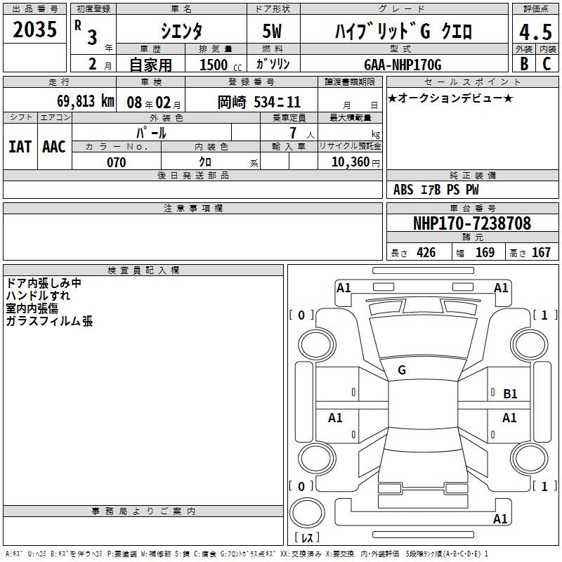 TOYOTA SIENTA HYBRID GKERO - лот 2035