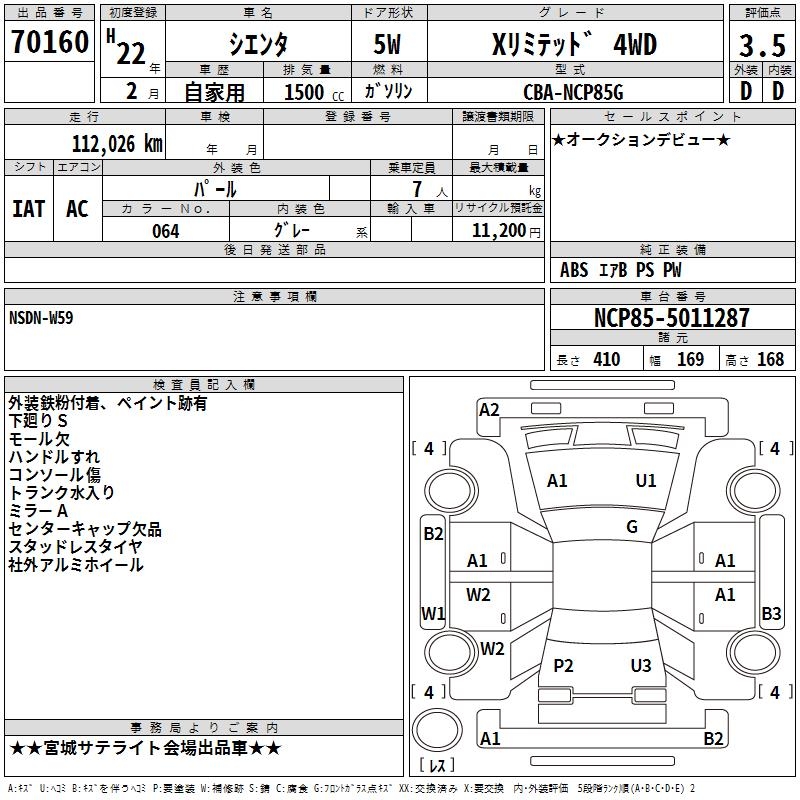 TOYOTA SIENTA X LIMITED 4WD - лот 70160