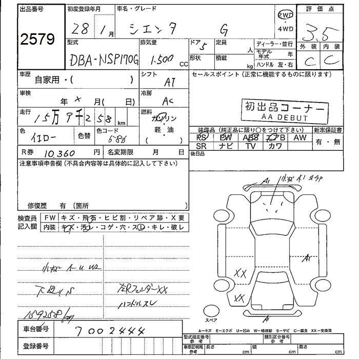TOYOTA SIENTA G - лот 2579
