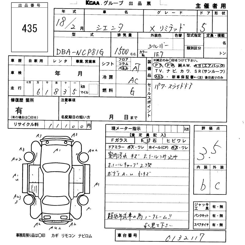 TOYOTA SIENTA X LIMITED - лот 435