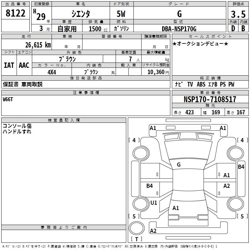 TOYOTA SIENTA G - лот 8122