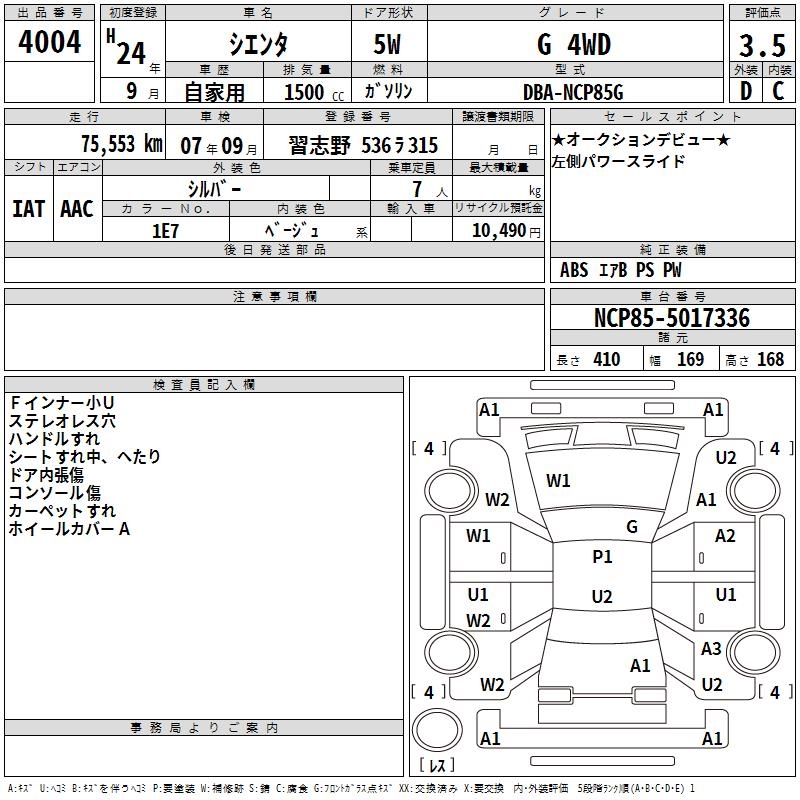 TOYOTA SIENTA G 4WD - лот 4004