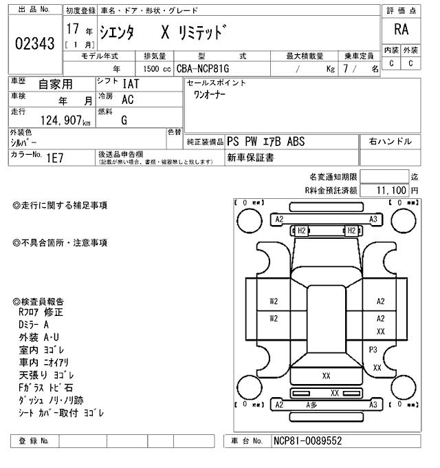 TOYOTA SIENTA X LIMITED - лот 2343
