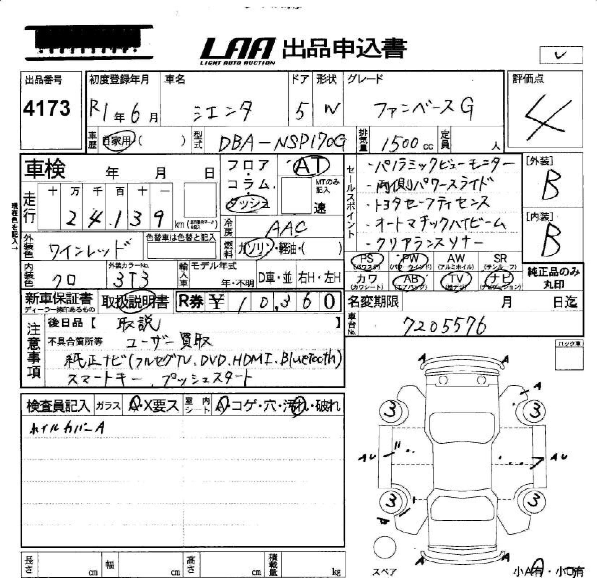 TOYOTA SIENTA FAN BASE G - лот 4173