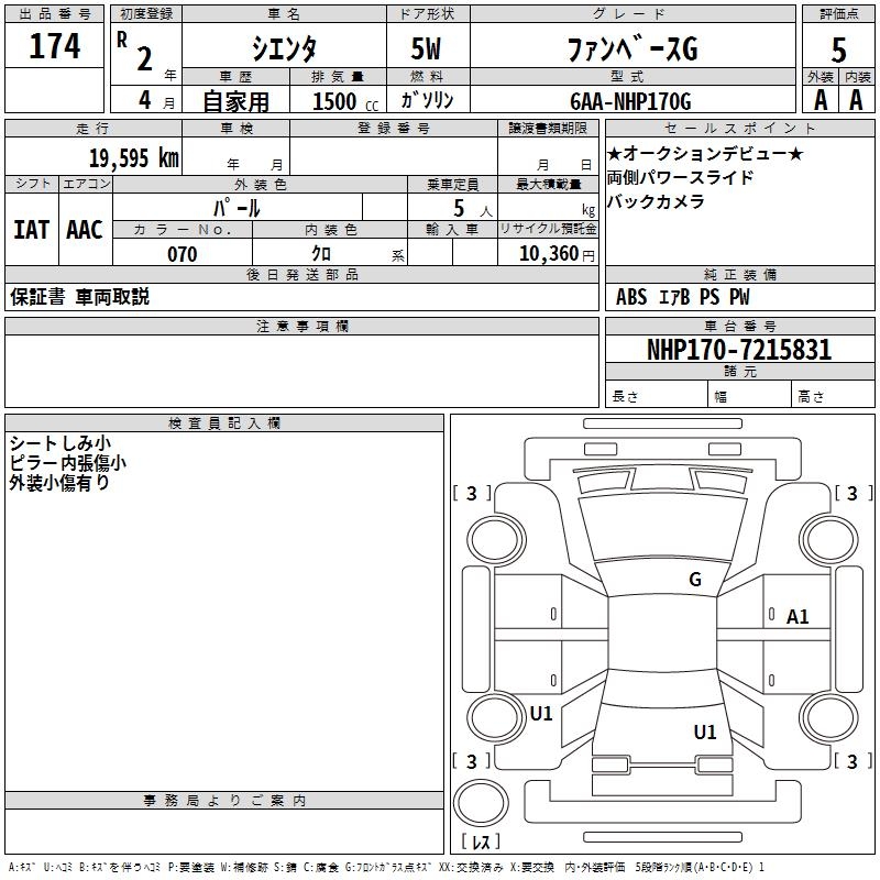 TOYOTA SIENTA FAN BASE G - лот 174