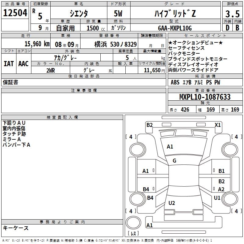TOYOTA SIENTA HYBRID Z - лот 12504