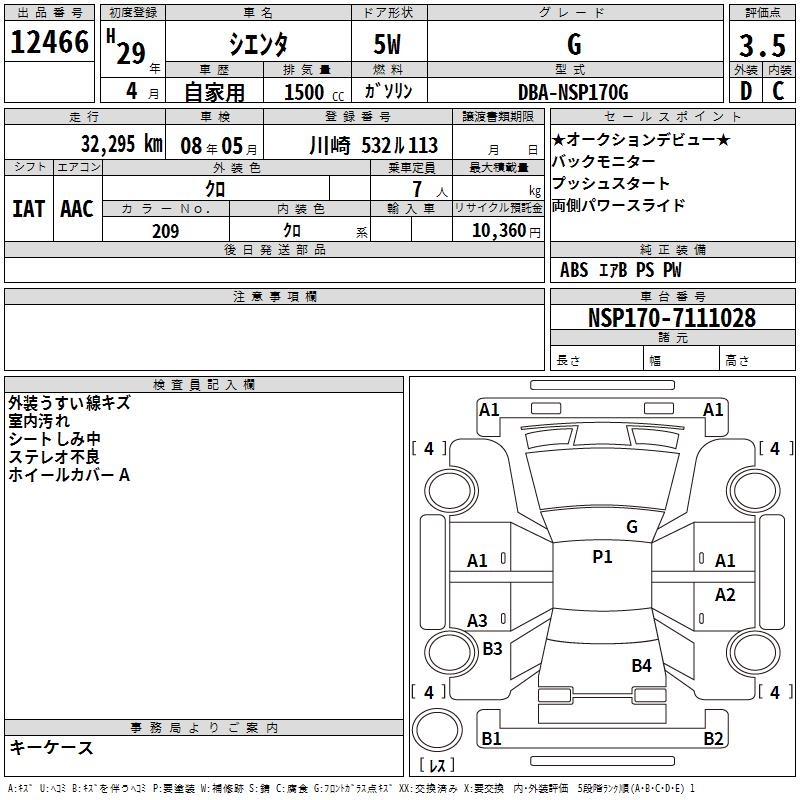 TOYOTA SIENTA G - лот 12466