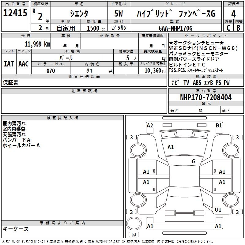 TOYOTA SIENTA HYBRID FAN BASE G - лот 12415