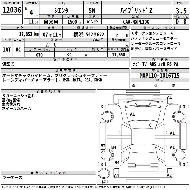TOYOTA SIENTA HYBRID Z - лот 12036