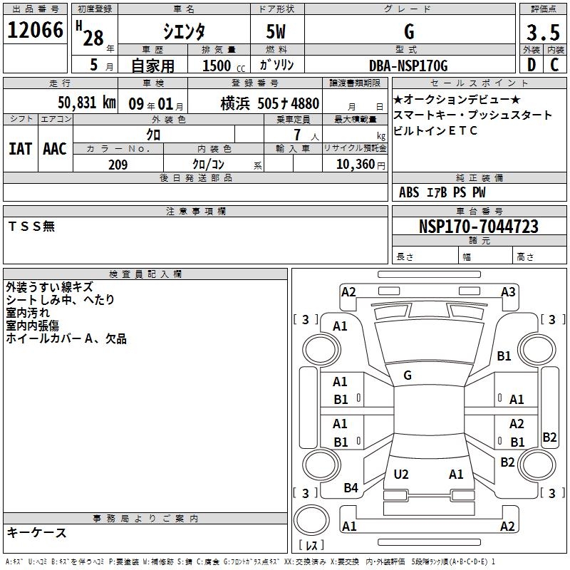 TOYOTA SIENTA G - лот 12066