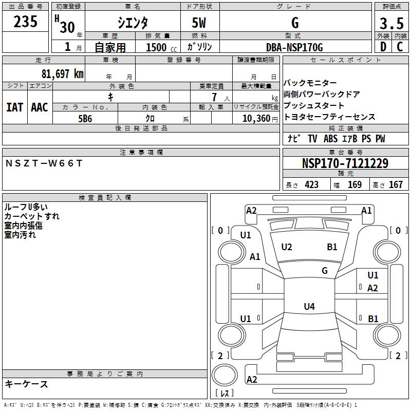 TOYOTA SIENTA G - лот 235